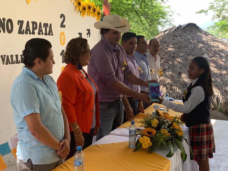 Ciudad Valles, SLP.- El alcalde independiente AdriĆ”n Esper CĆ”rdenas fue testigo de la graduación de 39 jóvenes de la generación 2016-2019 de la preparatoria por cooperación 38 āEmiliano Zapataā del ejido Ojo de Agua en la zona TĆ©nek de Ciudad Valles, a quienes obsequió varias tabletas.