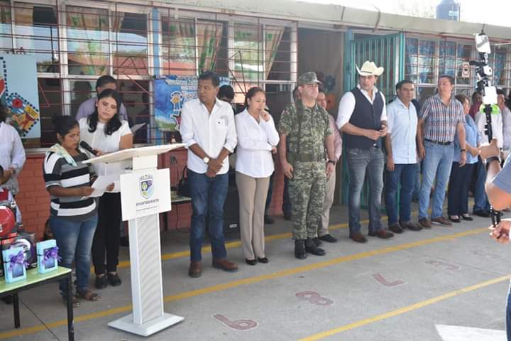 Posteriormente el alcalde entregó 3 tabletas a los estudiantes mÔs destacados de la primaria, secundaria y preparatoria del lugar, asà como 5 balones cada plantel educativo,, beneficiÔndose también el Cebac 24, telesecundaria José López Portillo y la primaria Ponciano Arriaga.