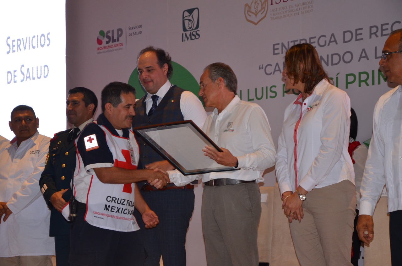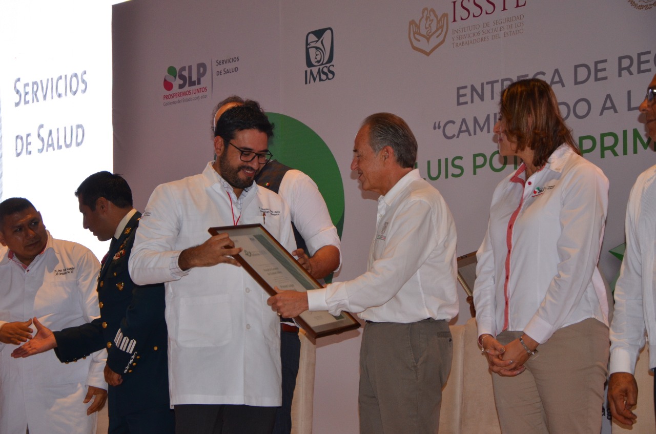 En Ciudad Valles, el Gobernador del Estado, Juan Manuel Carreras López hizo entrega de reconocimientos a las instituciones del Sector Salud, por contribuir a que en 2019 el estado refrendara el Primer Lugar Nacional en los indicadores Caminando a la Excelencia.