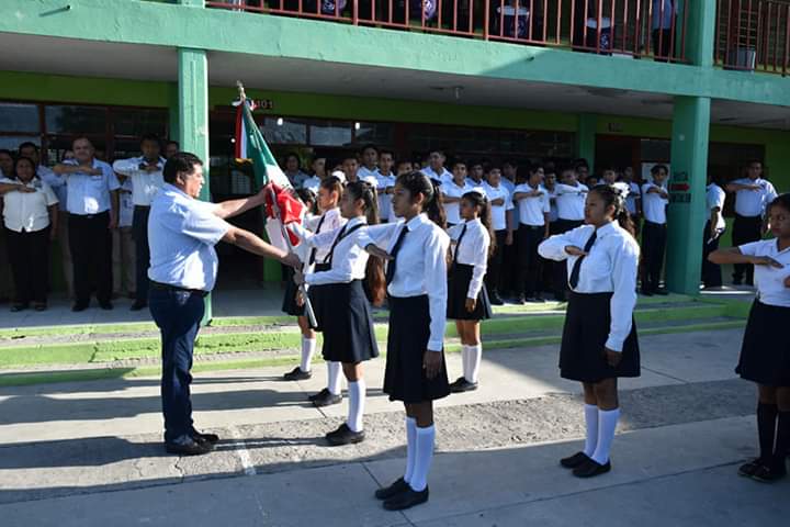 Ciudad Valles, SLP.- Esta mañana se llevaron a cabo los honores a la bandera en la escuela preparatoria «Juan José Ortiz Mazo» ubicada en la colonia Cerillera, dónde se dieron cita personalidades del ámbito educativo, municipal y militar.
