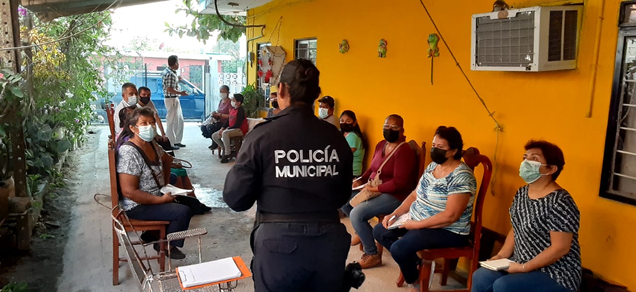 Ciudad Valles, S.L.P.- Como parte de las acciones de proximidad que sigue realizando la Dirección General de Seguridad Pública y Tránsito Municipal (DGSPyTM) de Ciudad Valles, elementos de la corporación se reunieron con presidentes de diversas colonias del sector norte de la ciudad, para brindarles información sobre el Programa «Educando también se protege».