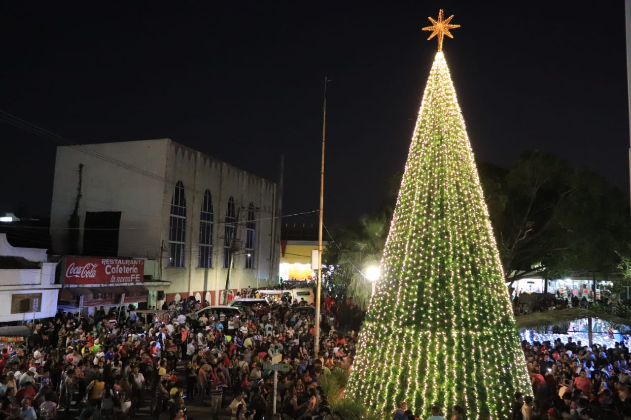 Ante miles de asistentes, fue encendido el pino navideƱo que adornarƔ la plaza principal de Ciudad Valles, durante las
