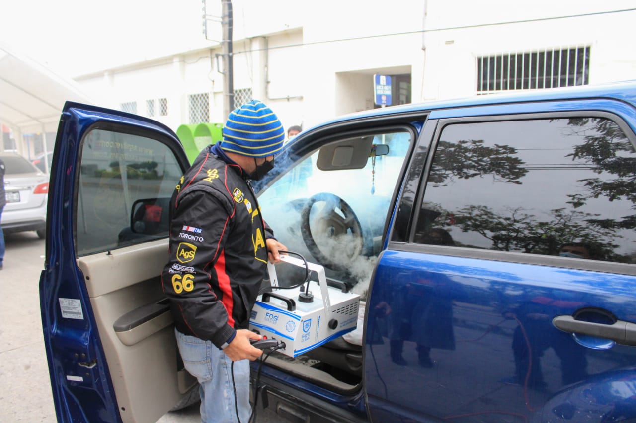 En pocos minutos, personal capacitado del DIF rocía el interior del carro y hasta las cajuelas, con un vapor que elimina gérmenes y el virus del SARS-COV2 o COVID-19.