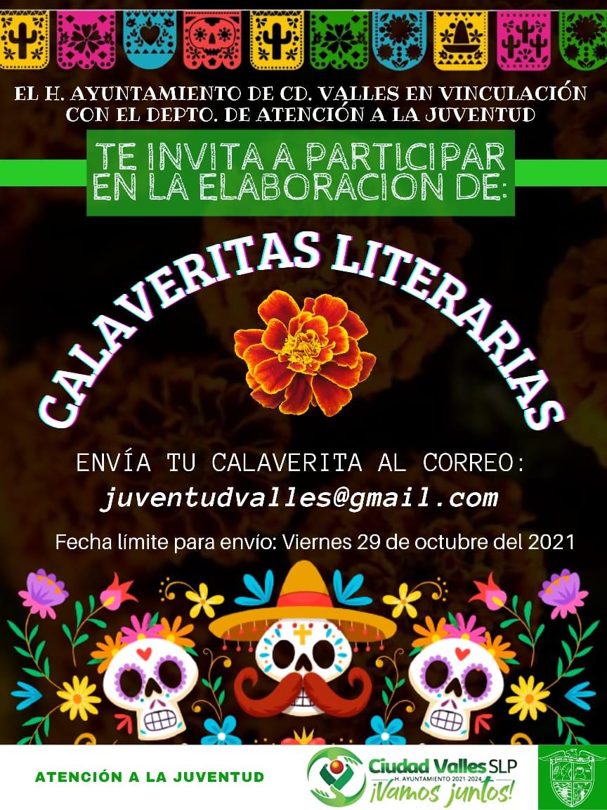 La Dirección de Atención a la Juventud, invita a la población vallense a participar en la exposición de Calaveritas Literarias para este Xantolo 2021, aseguró su directora Rebeca Robledo González.