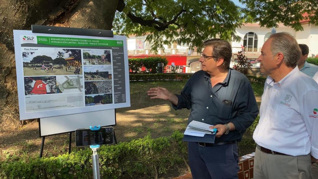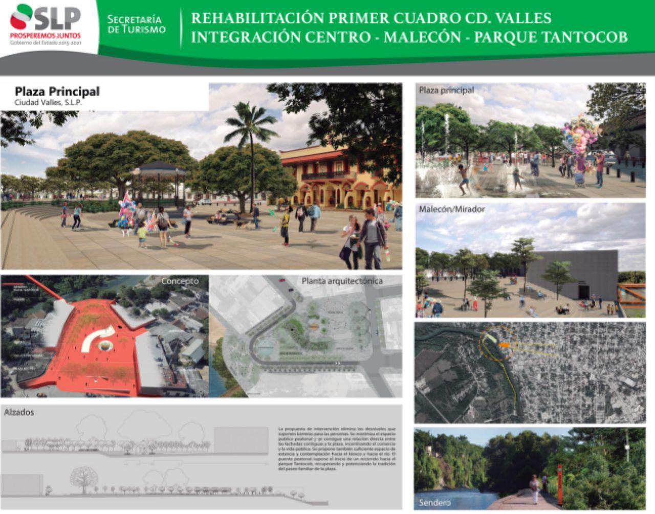 Esta remodelación de la plaza se realizará en varias etapas; el proyecto incluye una bajada hacia el río Valles que corre cerca de la zona centro de la ciudad, la rehabilitación del malecón y la construcción de un puente y un sendero para conectar con el parque Tantocob.