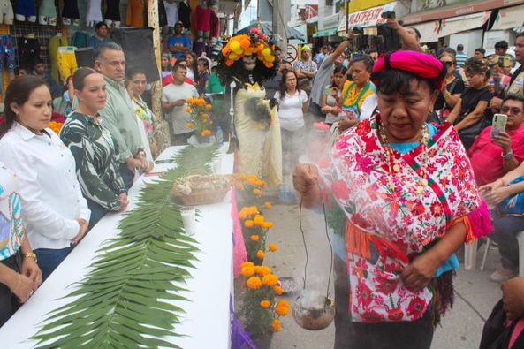En la calle Abasolo, se llevó a cabo la inauguración de un impresionante arco, elaborado con esmero por la Asamblea de Comerciantes Indígenas, así como por los tianguistas de la Abasolo.