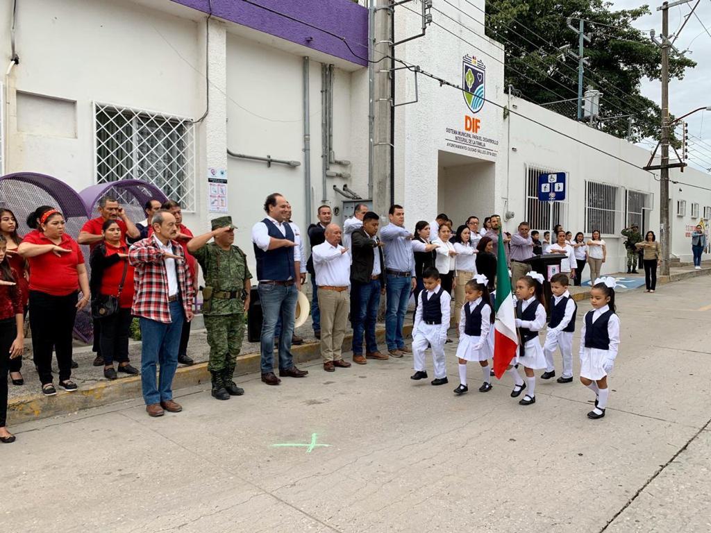 Estuvieron en el homenaje la directora del DIF Francisca Moreno Hernández, regidores, el director de Obras Públicas Alberto Machuca, el titular de CODESOL Alberto Espínola y autoridades educativas y militares.