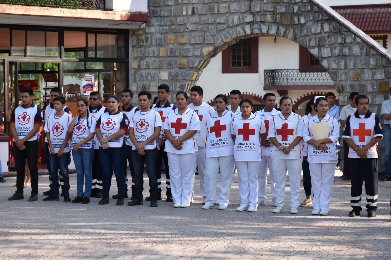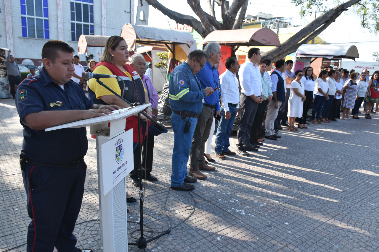 Ciudad Valles, SLP.- Esta maƱana en la plaza principal se llevaron a cabo los honores a los sĆmbolos patrios, a cargo del H. Cuerpo de Bomberos de esta ciudad, quienes despuĆ©s realizaron un simulacro, en conjunto con el personal de la Cruz Roja Mexicana local y Protección Civil Municipal.