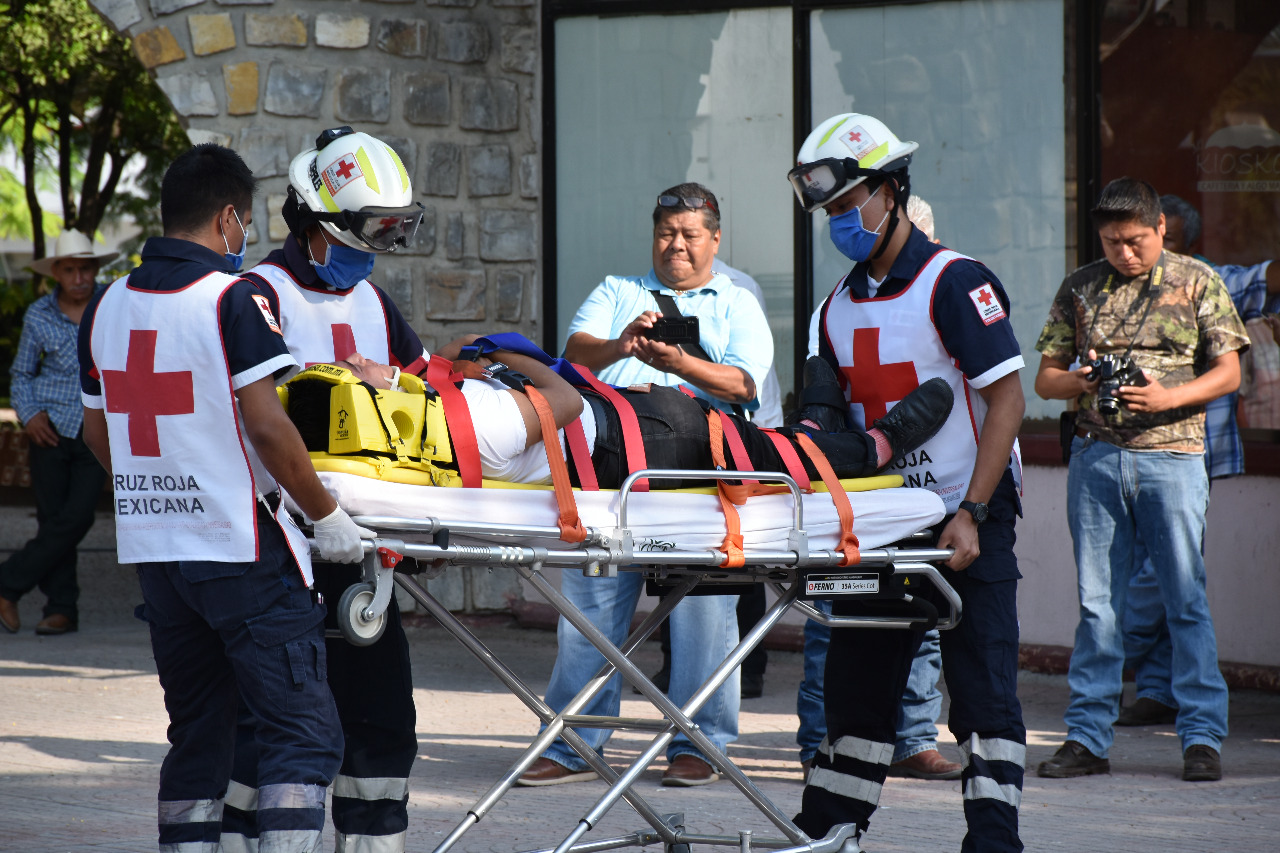 Se realizaron tres simulacros, el primero sobre primeros auxilios estuvo a cargo de la Cruz Roja Mexicana, en el cual explicaron el proceso que se sigue al atender a una persona lesionada por una caĆda y golpe en la cabeza.
