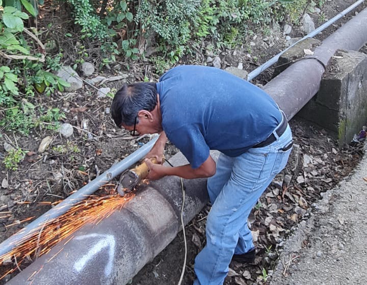 Ciudad Valles, S.L.P.- La Dirección de Obras Públicas y el área del Sistema Hidráulico Tanchachín, realiza los trabajos de reparación con soldadura en el tubo principal de la línea de distribución, con el propósito de restablecer el servicio de agua a los pobladores de la cordillera tének.