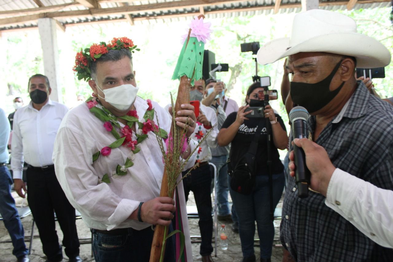 Recibe alcalde David Armando Medina Salazar bastón de mando de las comunidades Tének