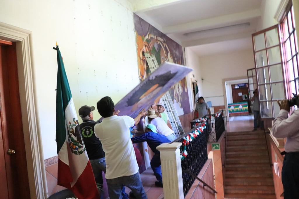 Retiran mural de Pilar Vidales de la Presidencia Municipal