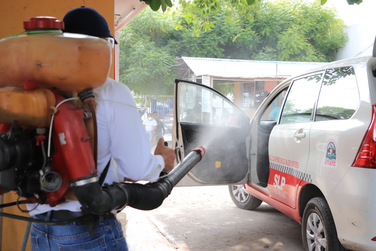 Con una máquina portátil para desinfectar, se sanitizarán los 749 taxis registrados en Ciudad Valles; también se realizará esta medida sanitaria en los mercados municipales y otros espacios públicos.
