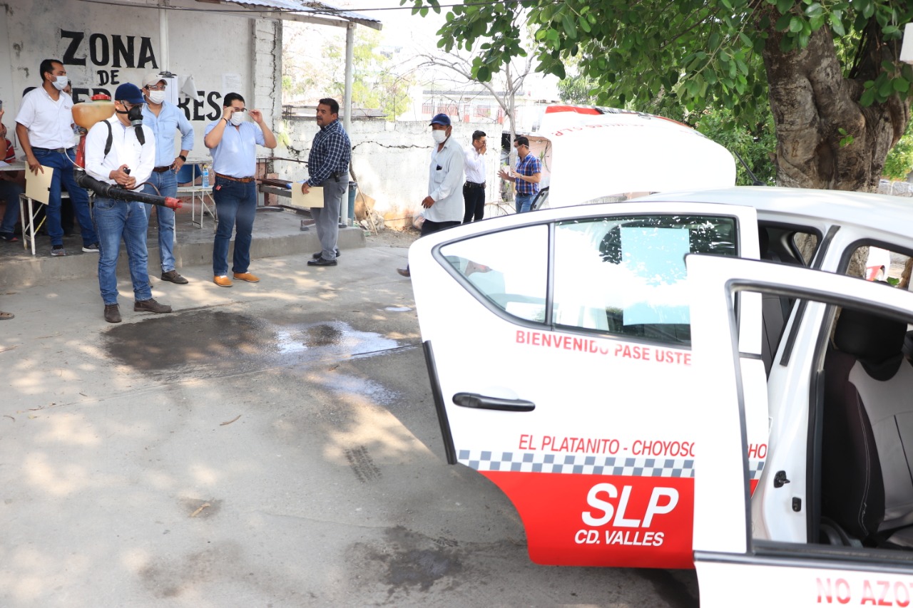 Con una máquina portátil para desinfectar, se sanitizarán los 749 taxis registrados en Ciudad Valles; también se realizará esta medida sanitaria en los mercados municipales y otros espacios públicos.