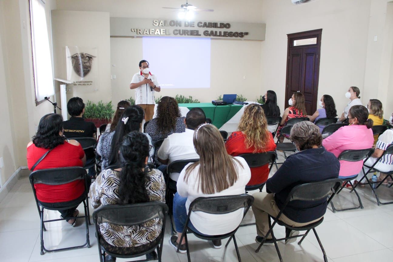 Ciudad Valles, SLP.- Con el curso “Buenas Prácticas para Desempeñar una labor como Servidor Público con Enfoque de Derechos Humanos” fueron capacitados este día funcionarios públicos del Ayuntamiento de Ciudad Valles, que son parte de los ocho departamentos de la Dirección General de Gestión Pública y Participación Ciudadana, a cargo de Sandra Isabel Rivera Hernández; donde también asistió Elvira Viggiano Guerra, Visitadora de Derechos Humanos; la Regidora de la Comisión de Derechos Humanos, Norma Alicia Chávez García; la directora municipal de Recursos Humanos Esmirna de la Garza Baldelamar y la coordinadora municipal de Derechos Humanos María Guadalupe Mendiola Acosta entre otros funcionarios.