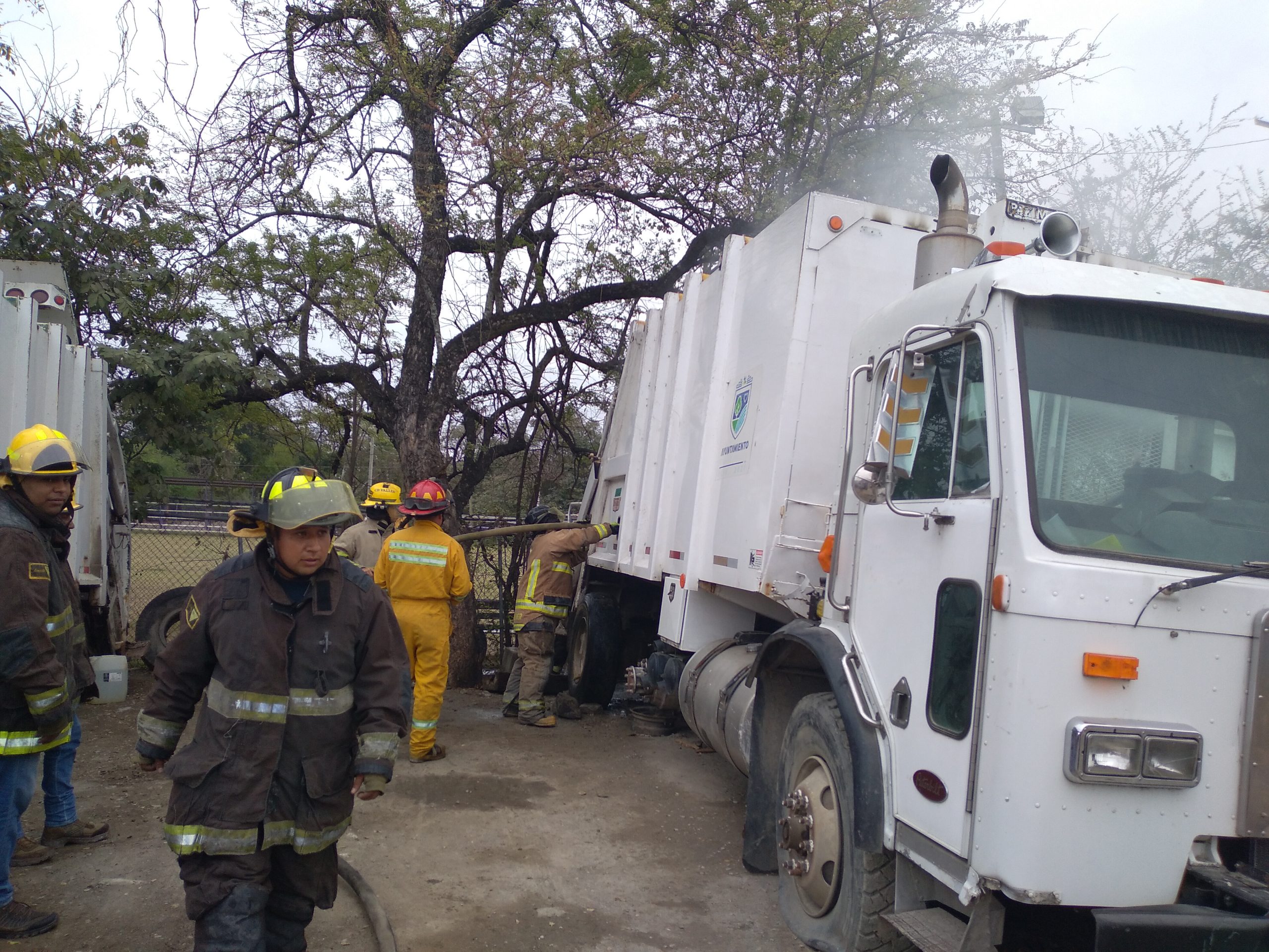 Se registra incendio en camión de basura en el taller municipal