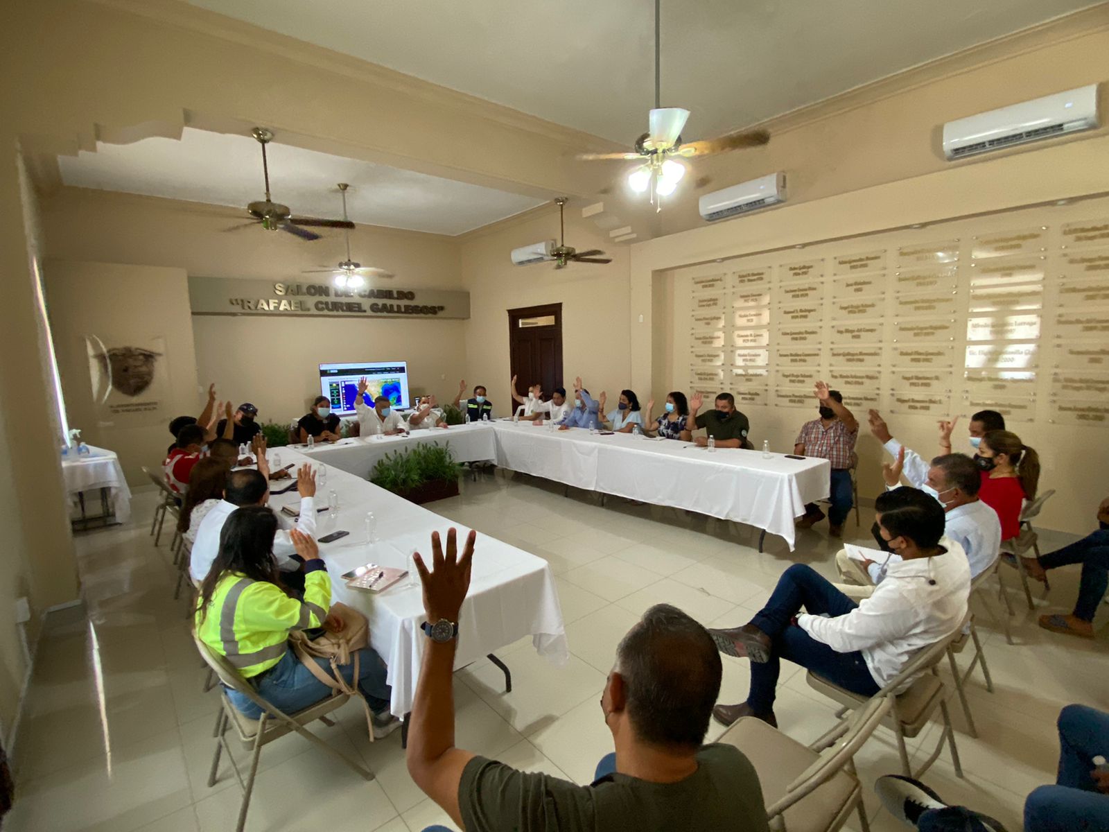 Ciudad Valles, S.L.P.- De manera extraordinaria ante la presencia de una perturbación tropical en el Golfo de México, que tocó tierra la tarde de este sábado y ante la posibilidad de afectaciones en la región, este domingo sesiono el Consejo Municipal de Protección Civil, encabezado por el Presidente Municipal David Armando Medina Salazar.