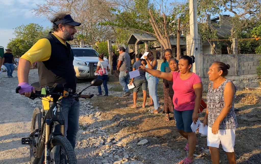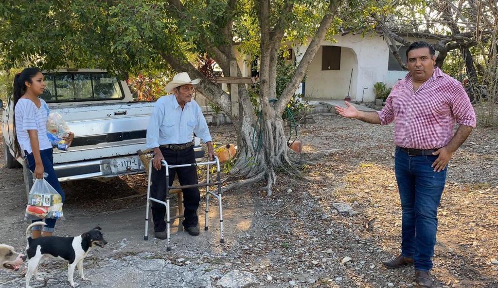Ciudad Valles, SLP.- El alcalde Adrián Esper Cárdenas realizó una gira de trabajo en el fraccionamiento El 21, colonia 2 de Enero y ejido Tanculpaya, lugares en donde hizo entrega de despensas y productos de limpieza, para apoyar a las familias durante la pandemia de coronavirus, Covid-19.