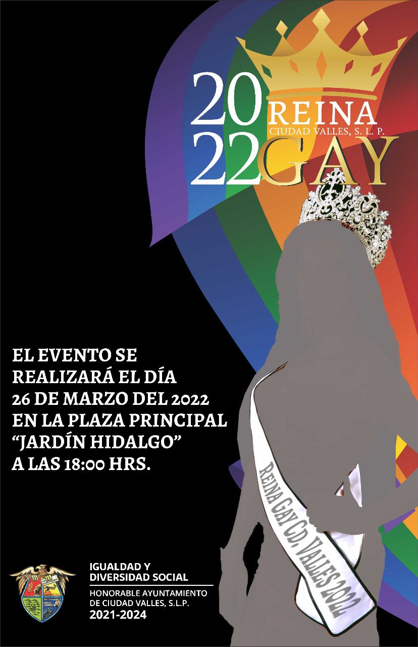 Ciudad Valles, SLP.- El próximo sábado 26 de marzo a las seis de la tarde, en la plaza principal de Ciudad Valles se llevará a cabo el certamen Reina Gay 2022, donde se contará con la participación de once aspirantes, así lo dio a conocer Guillermo Guerrero Vargas director de Igualdad y Diversidad Social.