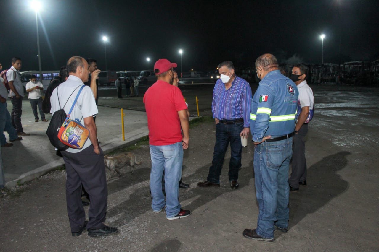 Con la finalidad de que verificar que el servicio de transporte urbano esté garantizado, a pesar del incendio que se registrará la madrugada de este miércoles en la empresa del servicio de transporte urbano, el Presidente Municipal David Armando Medina Salazar visitó las instalaciones y prometió apoyo a los trabajadores que se quedaron sin fuente de ingreso.